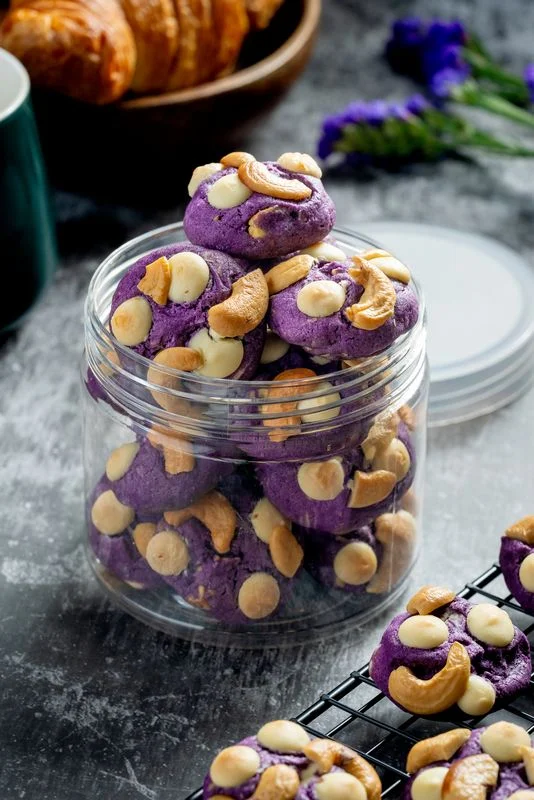 Ube Cashew and Double Dark Chocolate Chip Cookies